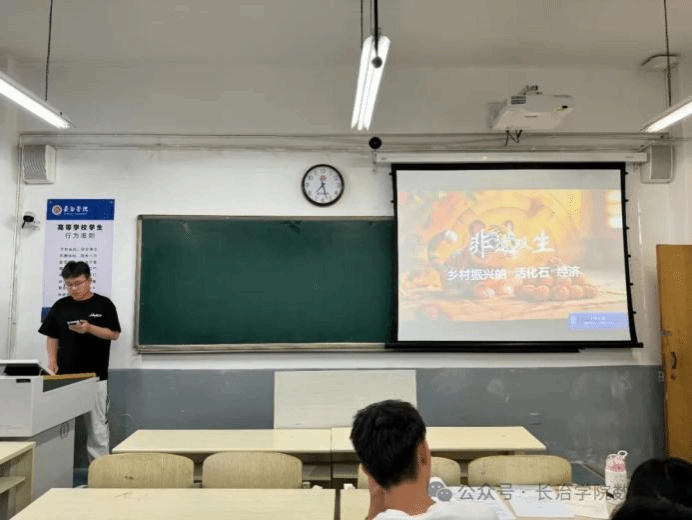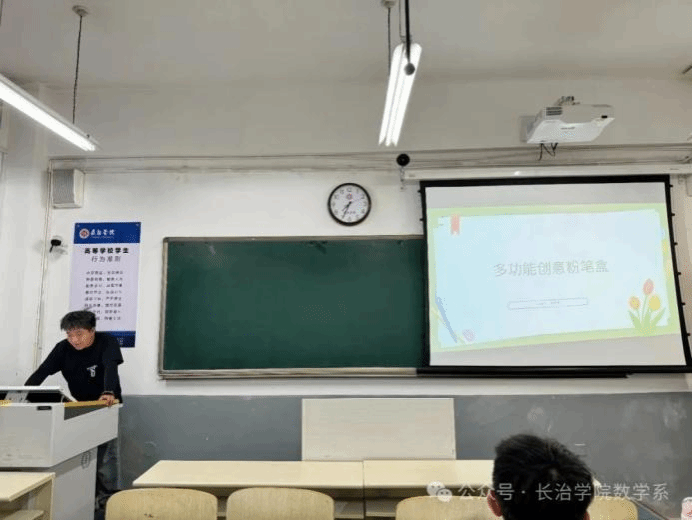 各团队分享交流自己的项目:“智旅精灵”、“多功能创意粉笔盒”、“非遗双生”、“考研单词趣味化学习APP”、“’棚’然新’机’等。每一个项目都充满了学生们对创新的热情与对未来的憧憬。他们通过PPT、视频和实物展示等多种形式,详细介绍了项目的背景、设计理念、实施过程以及所取得的成效。其中,“数字科技赋能,智旅美丽乡村”项目,利用大数据、云计算等现代信息技术,为乡村旅游提供了智能化解决方案,旨在提升乡村旅游体验,助力乡村振兴;“振兴乡村经济”项目则聚焦于如何通过农业技术创新和农产品品牌建设,推动乡村经济的多元化发展;而“多功能创意粉笔盒”项目,则以其独特的创意和实用性,赢得了在场师生的阵阵掌声。