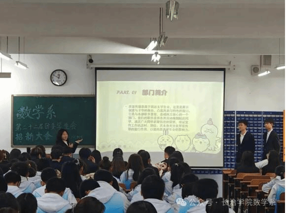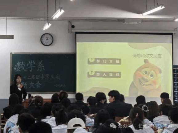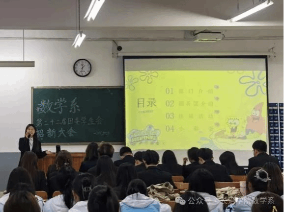 入大学的你,是否渴望找到一个平台,既能锻炼能力,又能结识志同道合的伙伴,还能为集体贡献自己的力量?2025年10月10日中午12:30,在逸夫教学楼东002教室,数学系第二十二届团委学生会招新大会如期举行。这场充满活力与期待的大会,不仅为2025级新生揭开了数学系团委学生会的神秘面纱,更搭建起了新生与学生组织之间的桥梁,让初入校园的学子们对未来的大学生活有了更多向往与规划。
