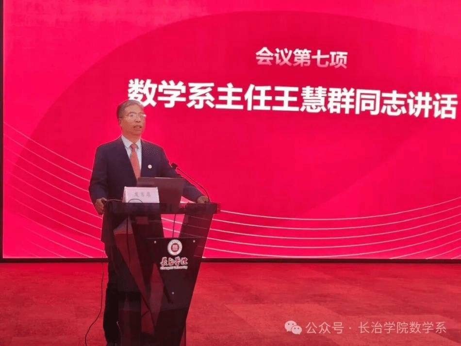 数学系主任王慧群回顾了数学系的发展历程与取得的成就,展望了未来的发展前景,激励新生们以身为数学系学子为荣,在专业领域深耕细作,为数学系的发展添砖加瓦。