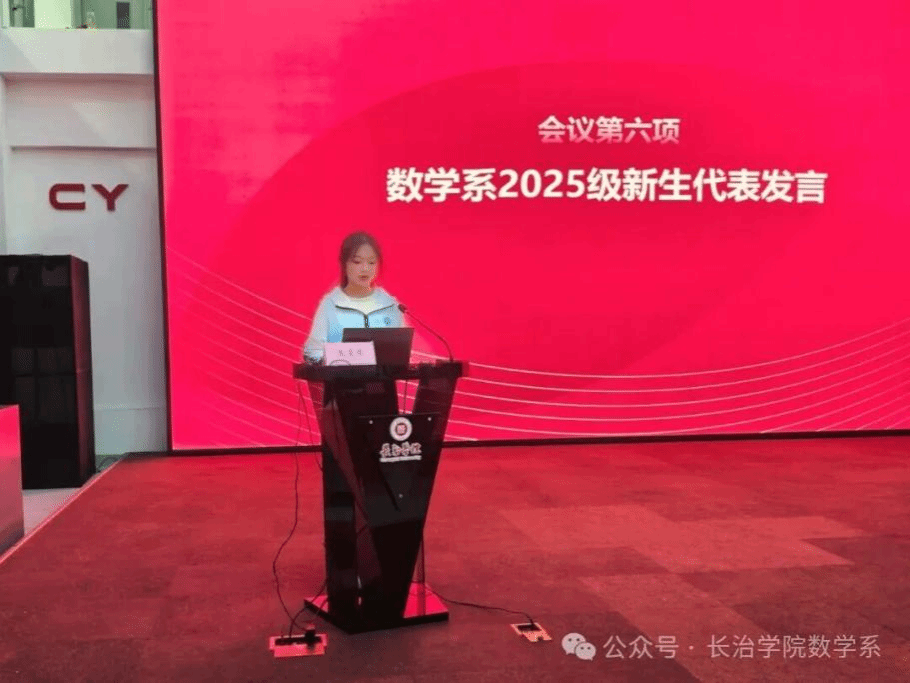 数学系2025级新生代表数学2501班席思宇分享了自己初入大学的感受与对未来的憧憬,代表全体新生表达了努力学习、不负韶华的决心。