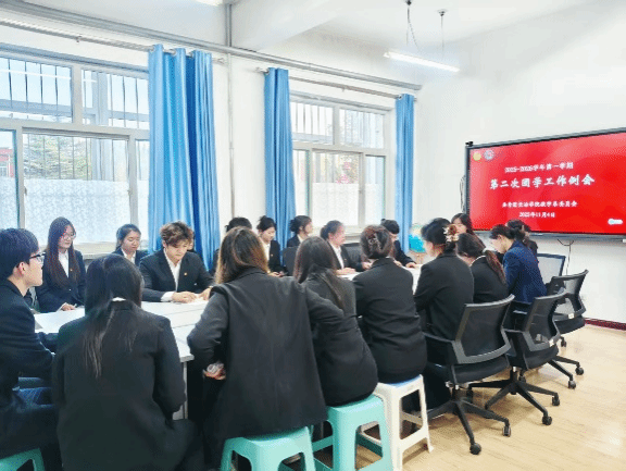 为全面总结数学系近期工作成果,科学规划未来发展蓝图,确保接下来的团学工作有序、高效推进,数学系于2025年11月4日下午5时在办公楼315会议室召开本学期团学工作第二次例会。出席会议的有党委书记王慧蓉老师,党委副书记郭晓晓老师,团委副书记张媛媛老师,主席团成员及学生会各部门部长。