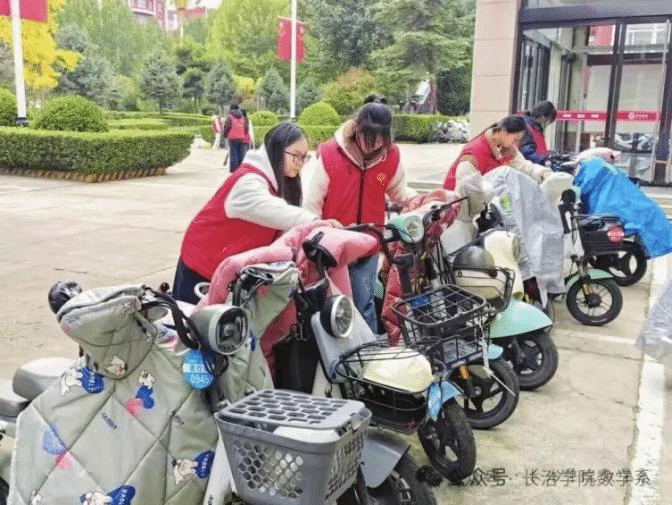 秩序规范维护:重点对随意停放的电动车、自行车进行规范摆放,确保车头朝向一致、排列整齐,保障道路畅通和校园观瞻。