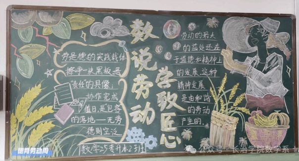 公益宣传实践:多个班级承担了劳动主题板报的设计与绘制工作,以“数说劳动,学致匠心”“劳动最光荣”等为主题,生动传播劳动精神和环保理念。