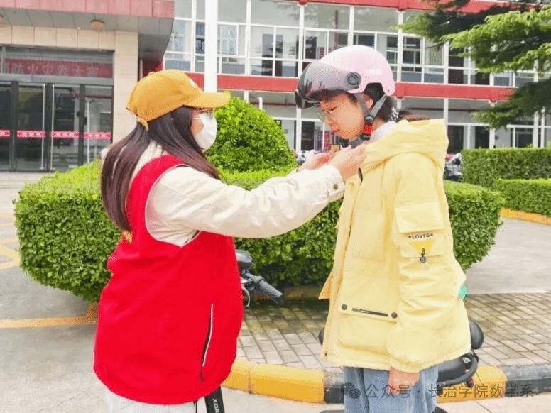 “戴头盔”安全劝导:在校园出入口等地,对骑行电动车未佩戴头盔的同学进行礼貌提醒和安全劝导,强调“一盔一带”的重要性,有效提升了大家的交通安全意识。