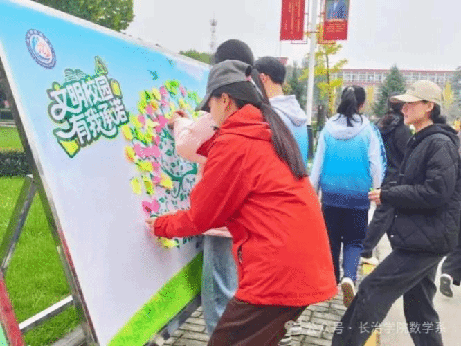 “承诺墙”文明签约:设置了“文明校园,从我做起”主题承诺墙,吸引了大量同学驻足并签名,公开承诺将自觉维护校园环境、遵守校规校纪,极大地提升了同学们的自我约束意识和集体责任感。