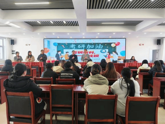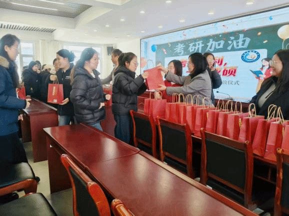 2025年12月17日,数学系举办为考研学子送考研加油包活动。数学系领导班子和备考学生班级辅导员悉数到场,为考研学子送上满满的祝福。系党委书记王永岗、系主任王慧群分别从考试心态调整、时间管理和考场规则等方面进行了提醒,希望同学们能够在考研中取得理想成绩,开启人生新的篇章。