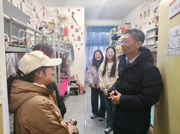走访过程中,老师们与同学们亲切交流,细致了解大家的学习进展与生活状况,关切询问冬季保暖、宿舍安全、学业压力等方面的情况,并鼓励同学们合理安排时间,积极面对挑战,遇到困难及时向系里反映。