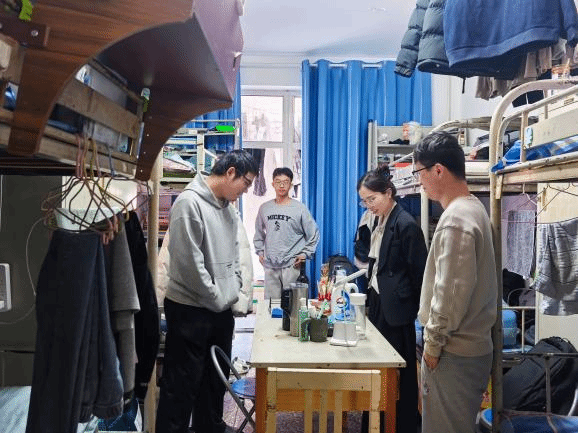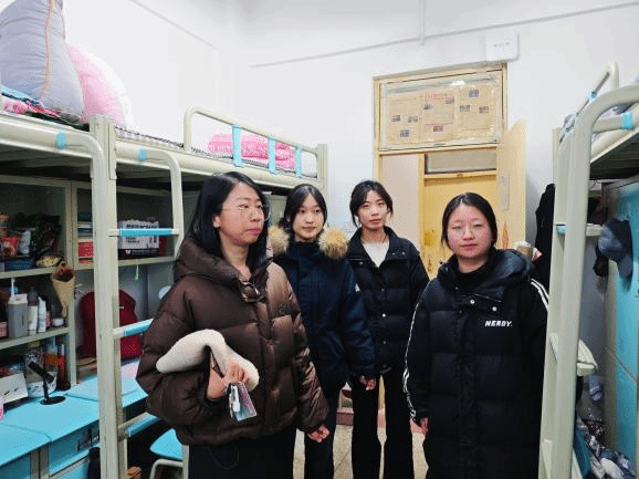 为了拉近师生之间的距离,切实保障学生的住宿安全与校园生活质量。近日,我系老师们深入学生宿舍开展走访慰问,在寒冬中为同学们送去关怀与温暖。