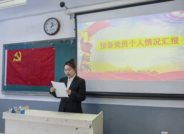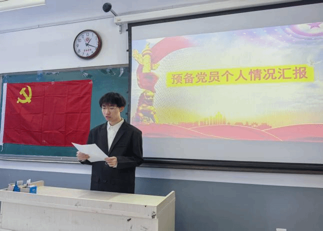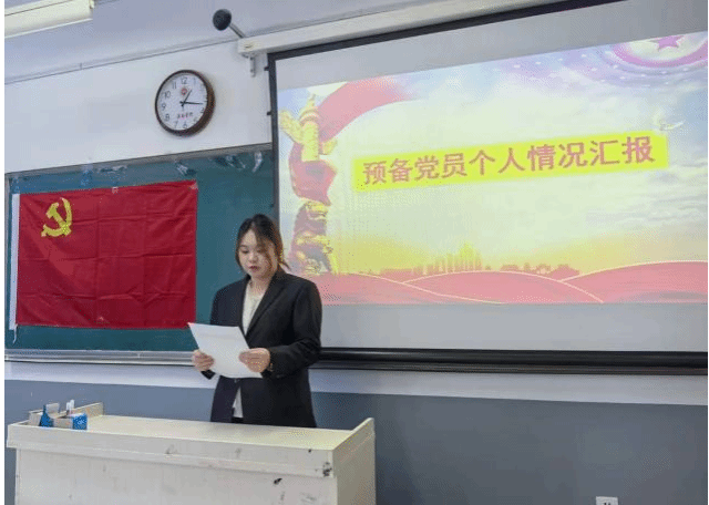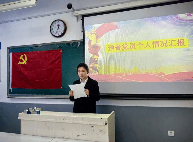 会议第二项,预备党员个人情况汇报。大会上发展对象们依次汇报个人情况,他们展现出了端正的入党动机和扎实的专业素养,其中多人曾获得综合奖学金、国家励志奖学金,并在数学建模、挑战杯、教学技能等竞赛中荣获省级、校级奖项,体现出扎实的专业素养和实践能力。他们在学生工作、志愿服务中表现积极,自觉学习党的理论,深刻剖析自身不足,并表达了接受组织考验的坚定决心。