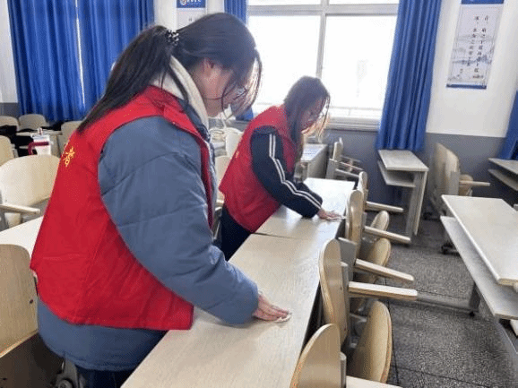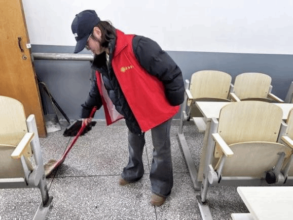 实践服务深化学习成效。作为主题团日活动的重要实践环节,数学系团委组织志愿者开展逸夫楼教室环境清洁志愿服务。活动中,志愿者们在组长带领下有序开展工作:仔细擦拭桌椅表面及缝隙,清除黏腻污渍与残留杂物;全方位清扫地面、桌下、墙角等卫生死角,用拧干的拖把分区域拖净地面;将垃圾分类打包后统一投放,按标准排列桌椅并检查关闭门窗电灯。通过亲身参与,同学们将贺信精神转化为实际行动,深刻体会劳动价值与志愿意义。
