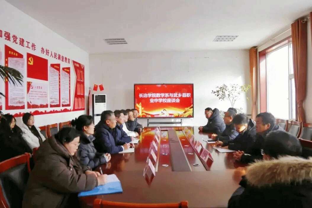 为落实“优企引才”定向访企拓岗促就业专项行动要求,深化校企协同育人,精准对接人才供需,2026年1月28日,数学系赴武乡职业中学开展访企拓岗促就业专项行动。我系党委书记王永岗、主任王慧群、党委副书记郭晓晓、副主任郭伟、系办公室主任王东维、教师代表王飞、专职辅导员贺青及学生代表参加。武乡职业中学党支部书记张韶东及相关教师热情接待并参与座谈。