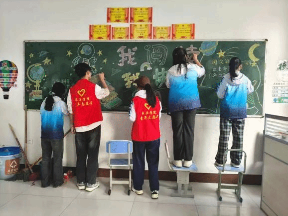 活动现场,志愿者们热情高涨,从黑板报版面构思、线条勾勒,到色彩调配、内容填充,每一个环节都细致认真。大家充分发挥创意,将励志标语、童趣卡通图案融入设计,在默契配合中高效推进创作。数小时后,一幅幅主题鲜明、色彩绚丽的板报崭新亮相,为特殊教育学校校园增添了一抹亮丽的春日色彩。