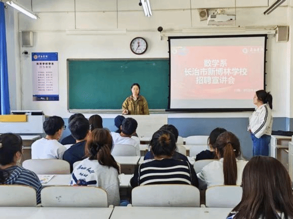 为进一步拓宽我系学生就业渠道,精准对接优质教育类岗位资源,助力学生立足专业深耕教育行业、实现职业理想,4月18日上午,数学系顺利举办长治市恒通职业技术学校、新博林学校教育专场招聘宣讲会,为有志投身教育事业的学子搭建了精准高效、供需双向对接的就业服务平台。