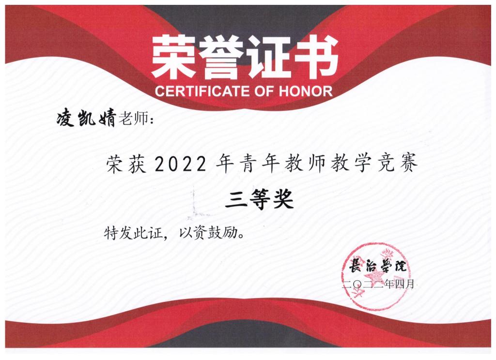 在长治学院青年教师竞赛中,《高等代数》课程团队教师凌凯婧荣获三等奖。