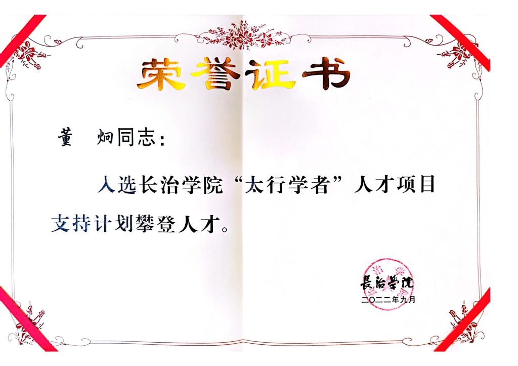 《高等代数》课程团队成员董炯老师荣获长治学院2022年度“太行学者”人才项目支持计划攀登人才