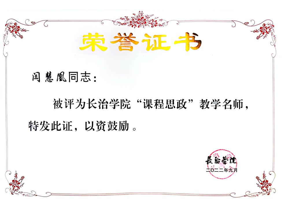 《高等代数》课程团队成员闫慧凰教师荣获“课程思政”教学名师
