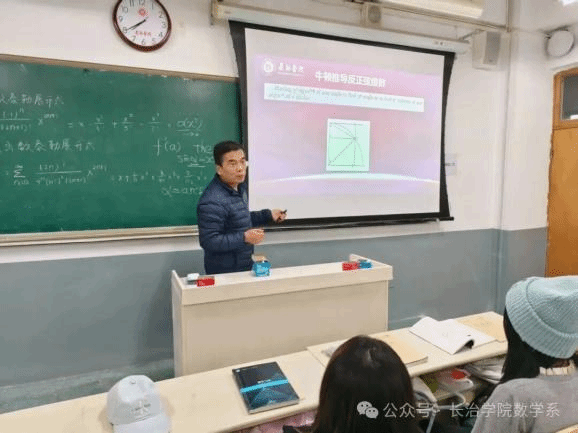 课堂伊始,张俊青老师以牛顿推导反正弦级数的历史思路为切入点,逐步引导学生从具体计算走向宏观认知。他将辩证思维方法巧妙融入数学公式的推导过程,通过对泰勒公式的拆分与整合、微积分发展中逻辑与历史的呼应,生动阐释了数学不仅是公式的集合,更是与思维方法紧密相连的智慧体系。让同学们在掌握专业知识的同时,学会用辩证视角分析问题。在张老师的引导下,抽象的数学符号不再是孤立的工具,而成为探索规律、解析问题的思维载体。同学们深刻体会到,数学并非孤立的公式堆砌,而是与思维方法相融的智慧体系。