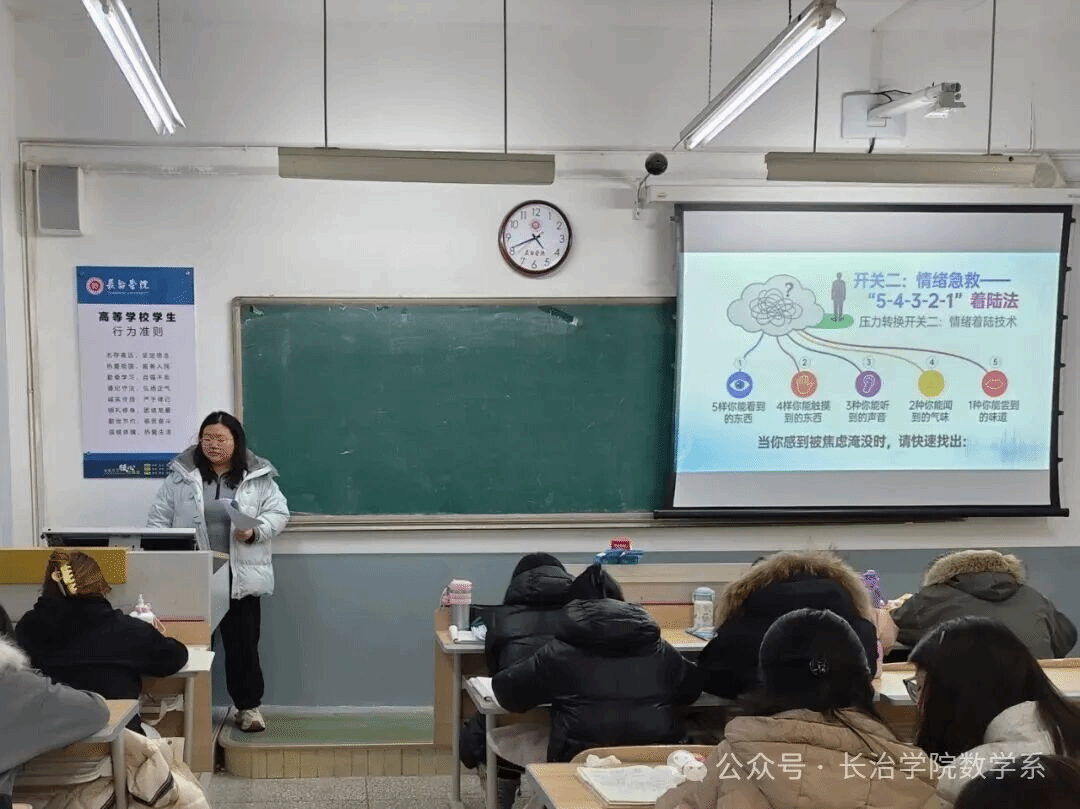 随后,贺青老师围绕“身份重塑”“压力共舞”“关系建构”三大核心议题展开授课。她以网络热议的“985废物引进计划”现象为切入点,剖析标签化思维对心理的束缚,结合刘秀祥、马宏达的真实案例传递多元价值理念;通过“优势地图”互动环节,引导学生挖掘自身闪光点,消解负面心理暗示、打破自我标签;同时拆解“复合型压力”的内涵,教会学生以成长型思维科学认知压力,实现与压力的和解共处。