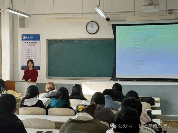 课堂上,原婧婧老师系统解读了总学分要求、课程体系构成及各模块学分分配,明确了通识教育、专业教育、教师教育课程与实践创新平台的具体要求,并对必修课重修、选修课替代等重要学分规则进行了重点说明。此外,她还详细梳理了与学业相关的关键学籍管理文件,介绍了面向师范与数学专业的各类学科竞赛及其时间安排,并就专业课线上考试规范、大学英语四六级及计算机等级考试等常见备考事项提供了清晰指引。