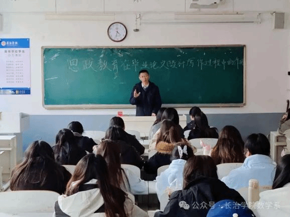3月25日下午,数学系“悟思政·周周讲”系列活动在教学楼109教室如期开讲。本次课程由王飞老师主讲,面向数学24专升本3班全体同学,以“思政教育在毕业论文(设计)写作过程中的作用”为题,旨在引导高年级学生将思政理念贯穿于学术研究的全过程,实现专业能力与学术修养的同向提升。