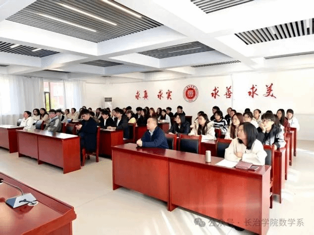 报告开始前,邢艳元老师详细介绍了齐霄霏教授的学术履历与研究成果。齐教授是山西大学数学与统计学院教授、博导,主要从事算子理论与算子代数,以及量子信息中量子关联等的基础理论研究。出版学术专著1部,在Journal of Functional Analysis,Science in China,Physical Review A等知名数学与物理学术刊物上发表学术论文140余篇。主持山西省一流课程《数学分析》一门,主持省教改项目2项。我系师生对齐教授莅临我校指导表示热烈欢迎。